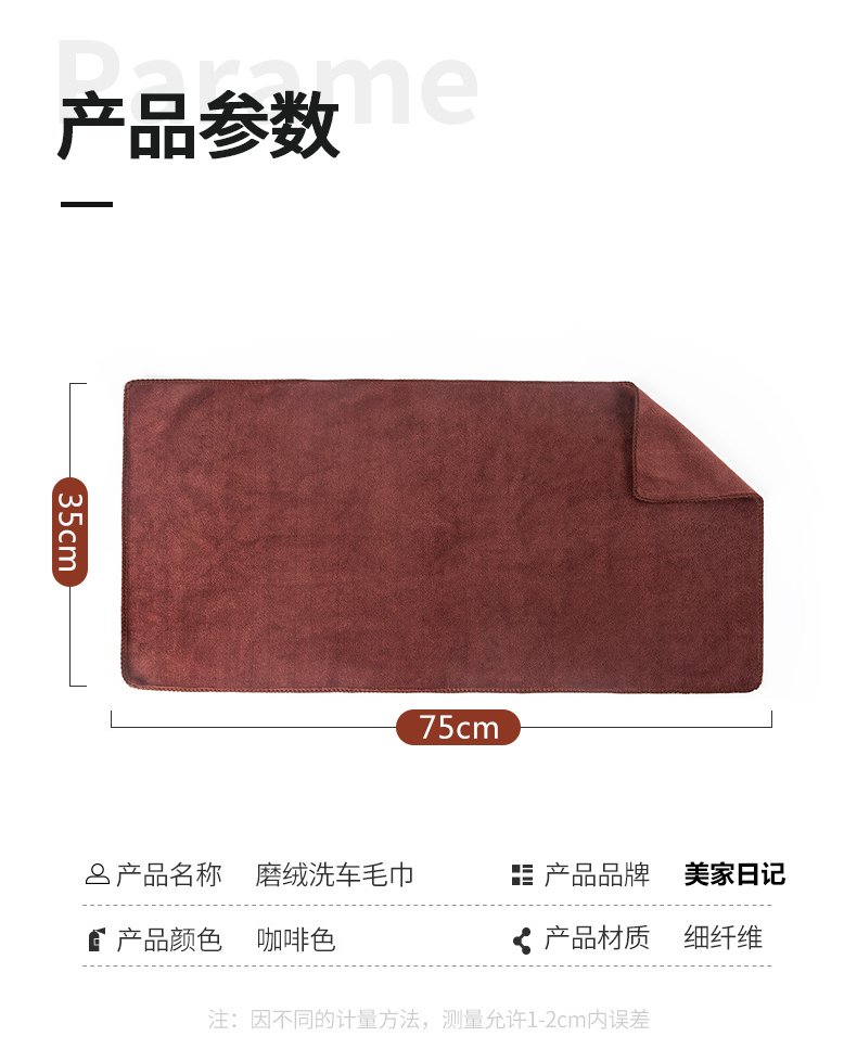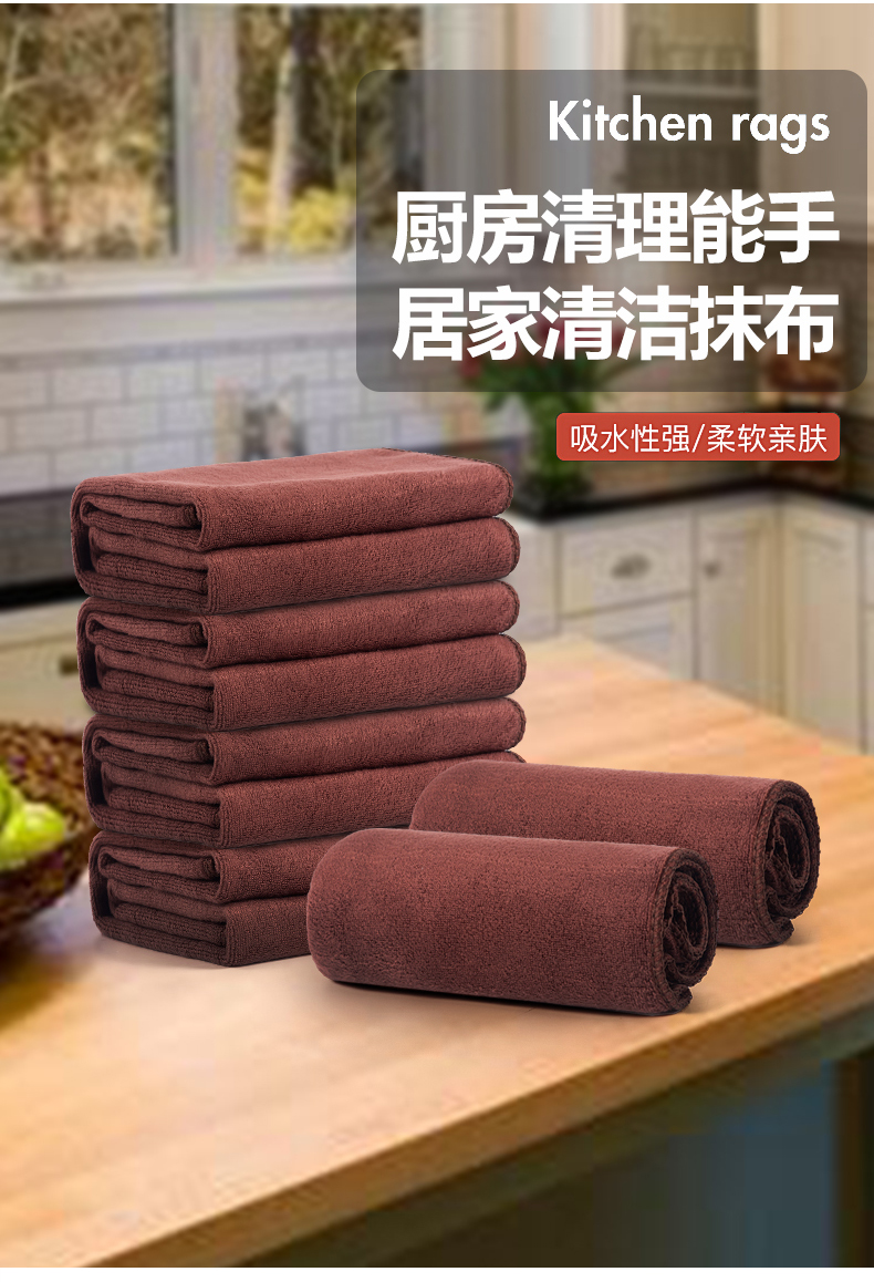 美家日记 抹布百洁布 加厚加大商用物业洗车清洁布 擦车大毛巾吸水不易掉毛厨房擦家具玻璃家务洗碗布棕色款