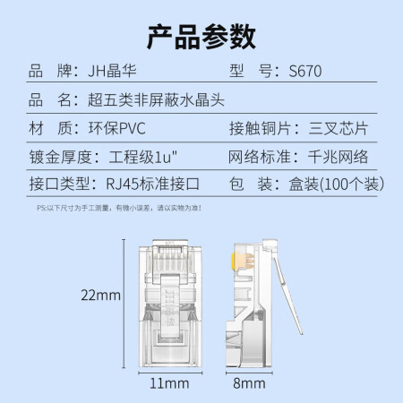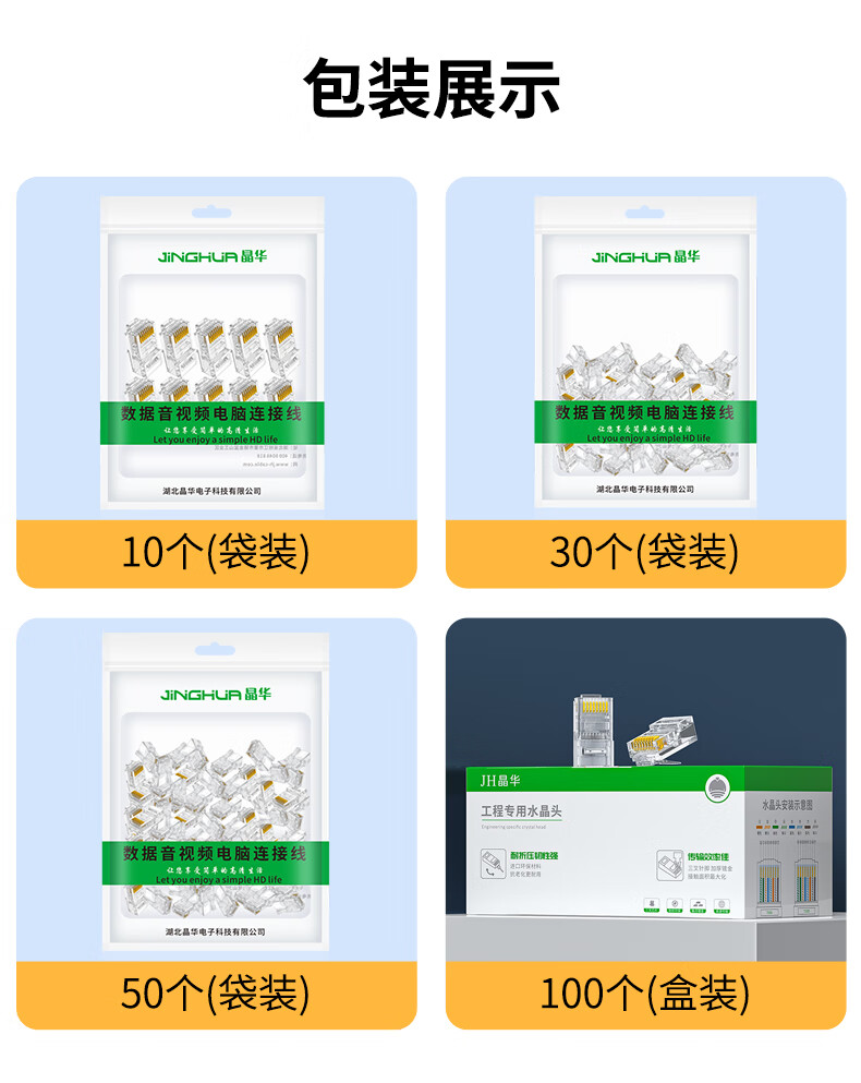 晶华/JH CAT5E 网络连接设备 工程专用水晶头 1*200