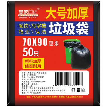 美家日记 大号垃圾袋 黑色加厚垃圾袋 商用环卫环保垃圾袋 家用晒被袋 单位物业平口收纳袋 70*90/50只装