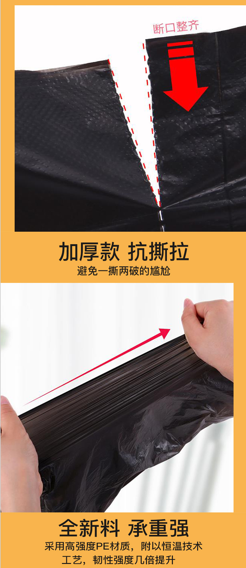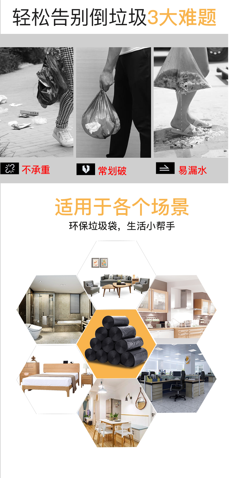 美家日记 垃圾袋 家用办公平口垃圾袋 600只/30卷实惠经济装 分类加厚断点式黑色收纳袋 45*50CM