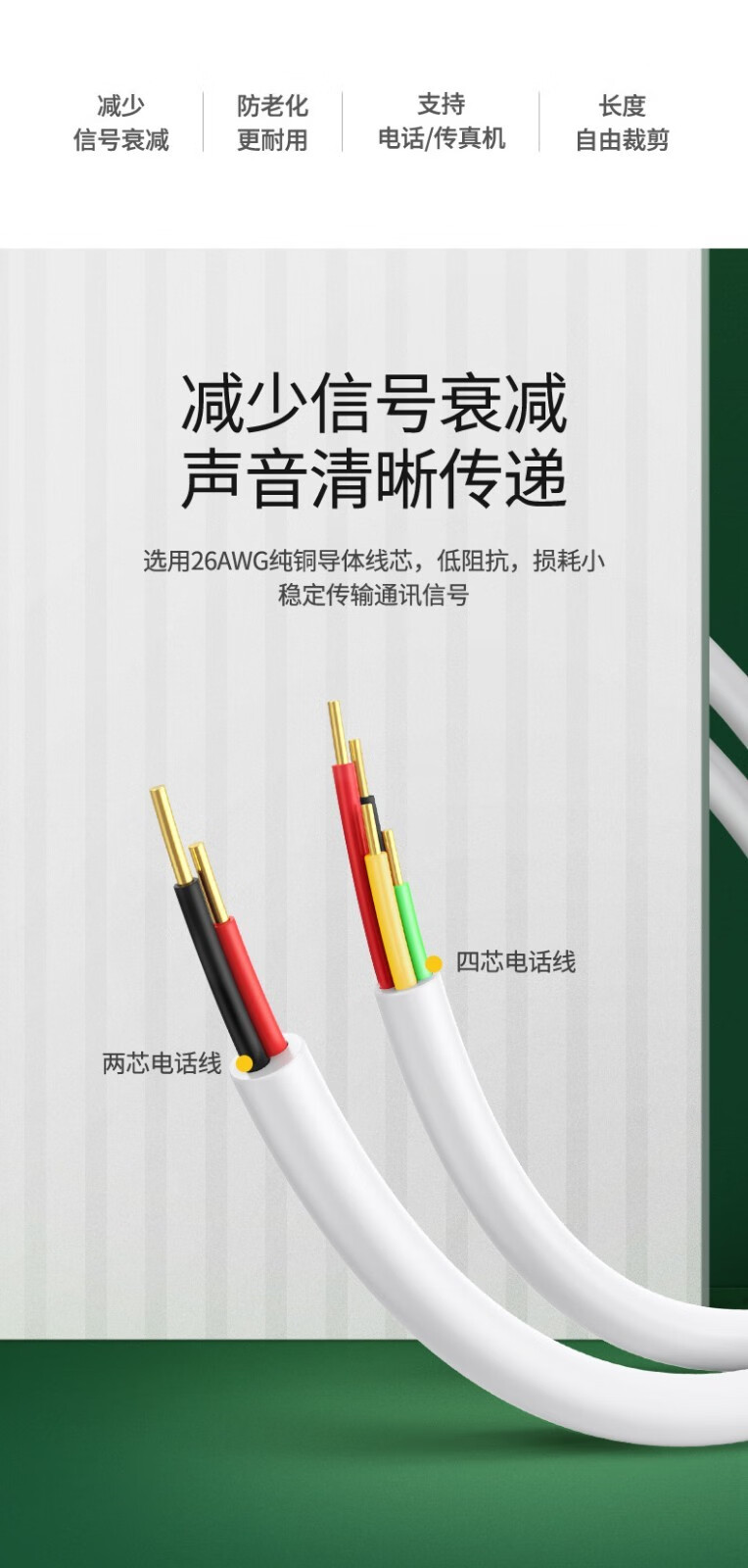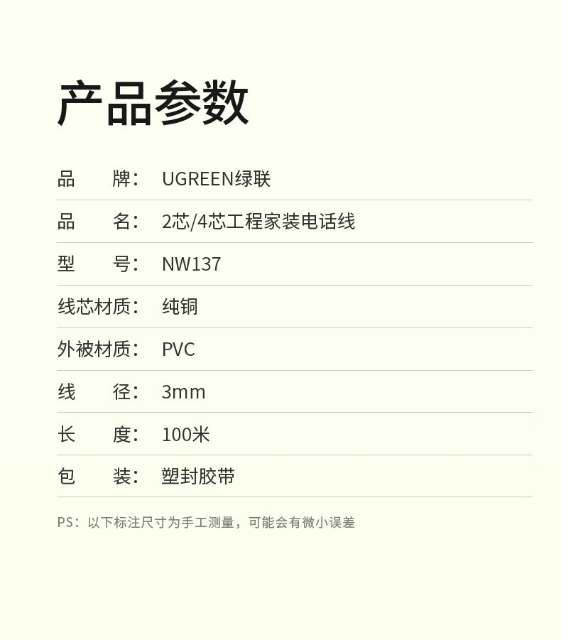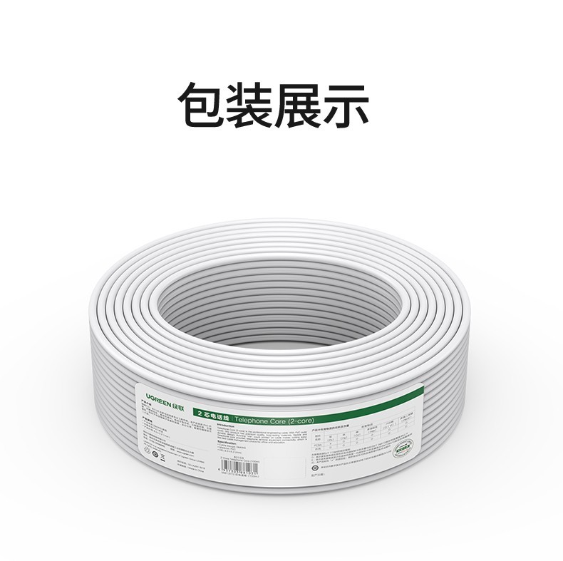 绿联/UGREEN 80110 数据线 电话线100米/卷 两芯 白皮 纯铜