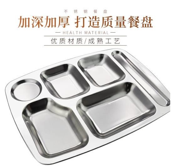 振兴柜业 CODA不锈钢餐盘打饭盘长方形快餐盘分格盘子饭盒学校食堂餐具 1.2厚六格 k610