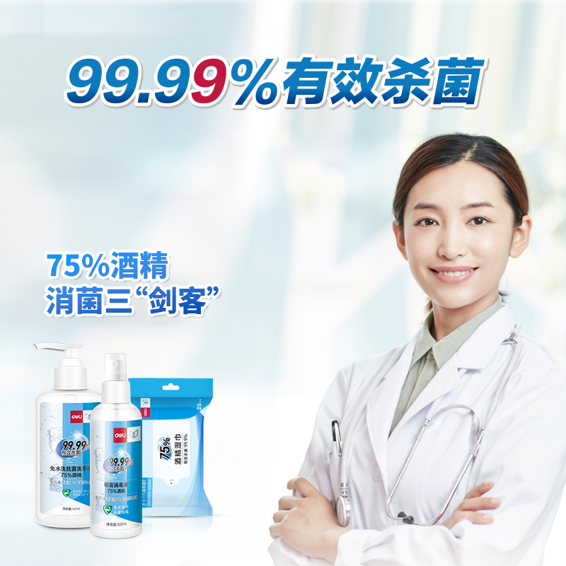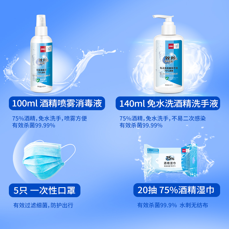 得力31012消毒防护套装(透明)(140+100+5口罩+1湿巾)