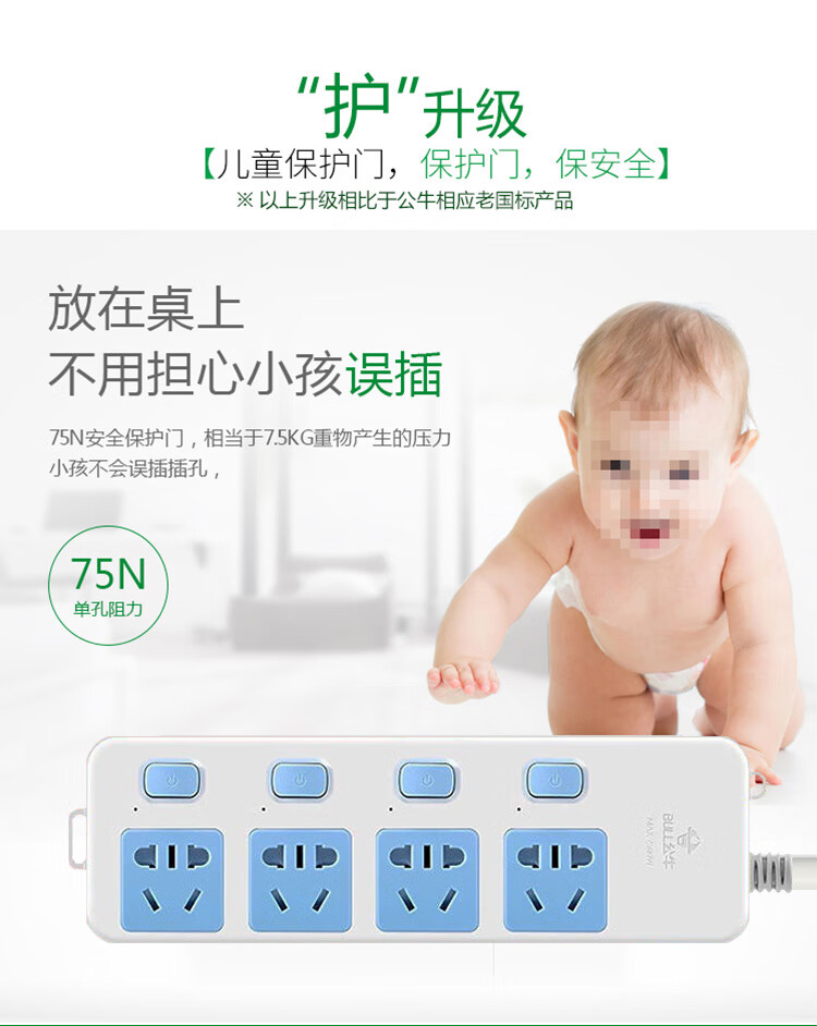 公牛/BULL 3m 插座 公牛延长线插座 3米长4开关