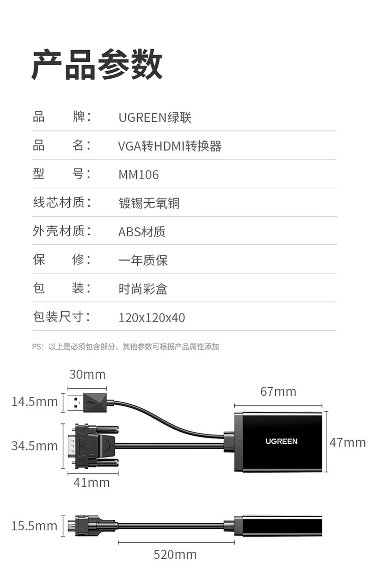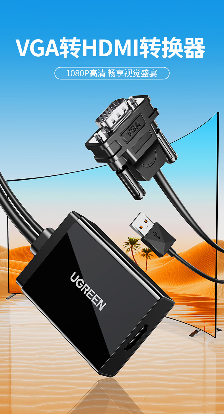 绿联/UGREEN vm70 网络连接设备 VGA转HDMI 转换器(塑料)