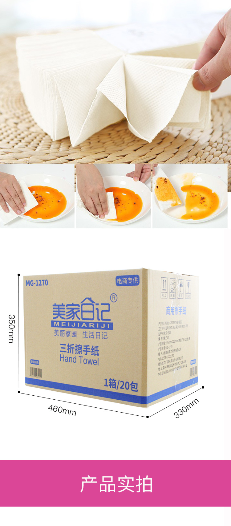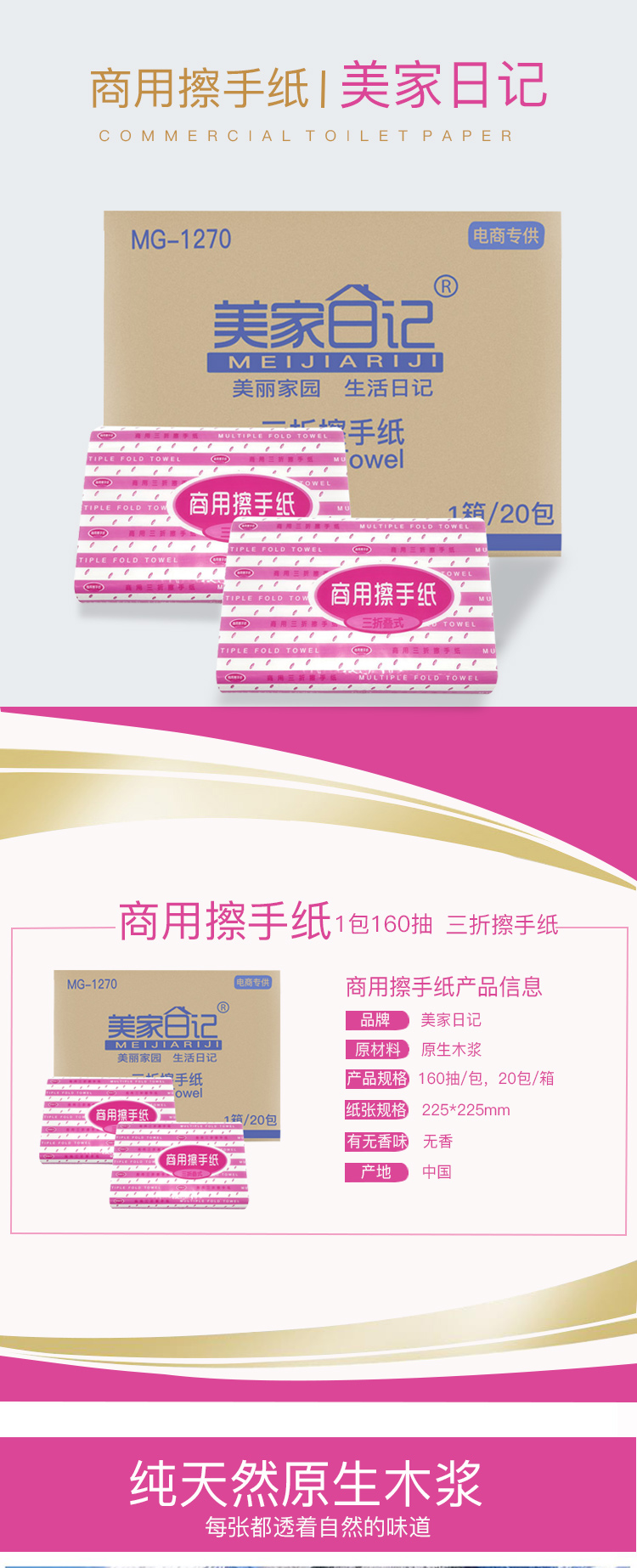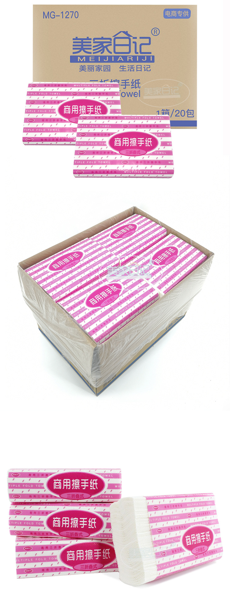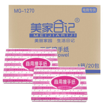 美家日记 商用三折擦手纸 酒店商场公用抹手纸 面巾纸 餐巾纸 洗手间抽纸加厚型酒店擦手纸20包1箱